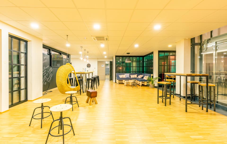easydesk bietet auf insgesamt 1500 m2 vielseitige und flexible Arbeitsmöglichkeiten. Diese reichen je nach Bedarf vom flexiblen Einzelarbeitsplatz – easyFLEXdesk – bis hin zu Einzelbüros und individuell gestaltetem 500 m2 Großraumbüro – easyPRIVATE. Zur Verfügung stehen zudem mietbare Besprechungs- und Präsentationsräume für Workshops und Schulungen, eine großzügig gestaltete Lounge für den nächsten Firmenevent – mit Gesprächskojen, Gemeinschaftsküche samt Kaffeebar und unterschiedlichen Sitzgelegenheiten, die zu kreativen Pausen einladen und die Kommunikation untereinander fördern.